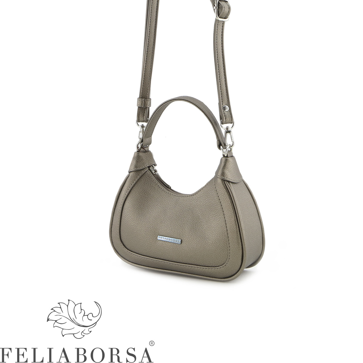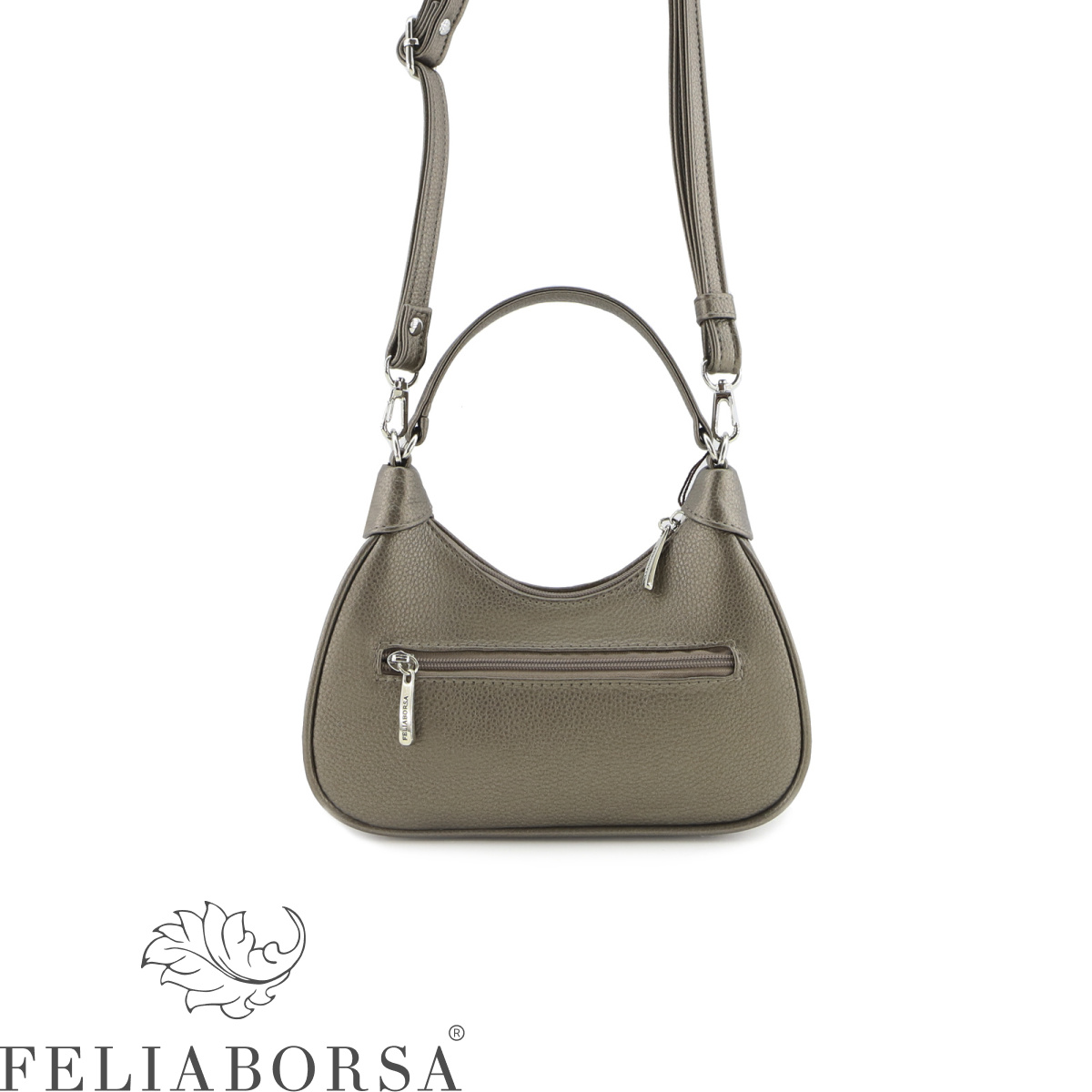 Сумка женская Feliaborsa, полужесткая на одной ручке и регулируемом ручкоремне. Одно отделение на молнии. Задняя стенка: карман на молнии.