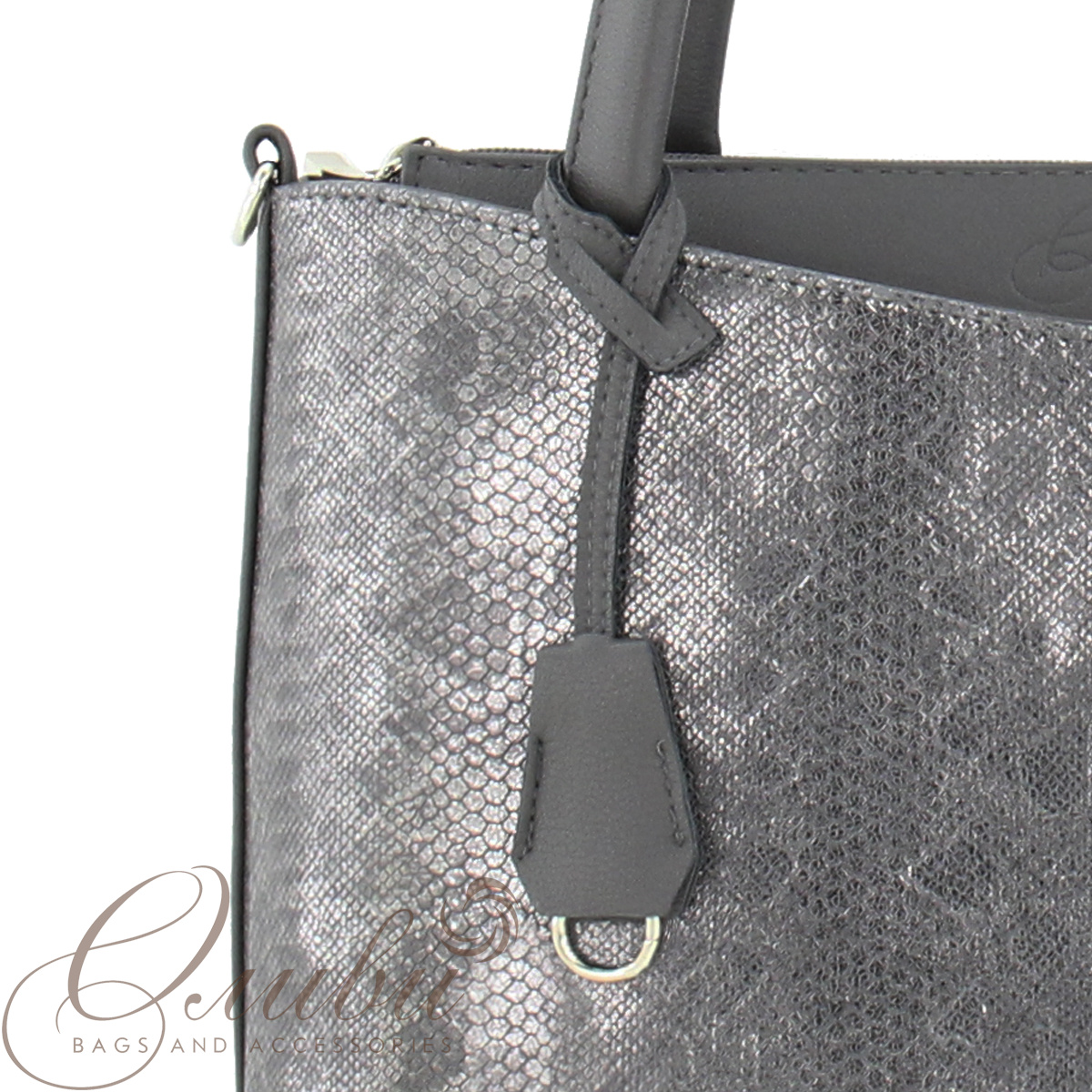 Сумка женская Оливи, полужесткая на двух ручках и регулируемом ручкоремне. Два отделения на молниях. Задняя стенка: карман на молнии. Внутри: карман-перегородка на молнии, открытый карман.